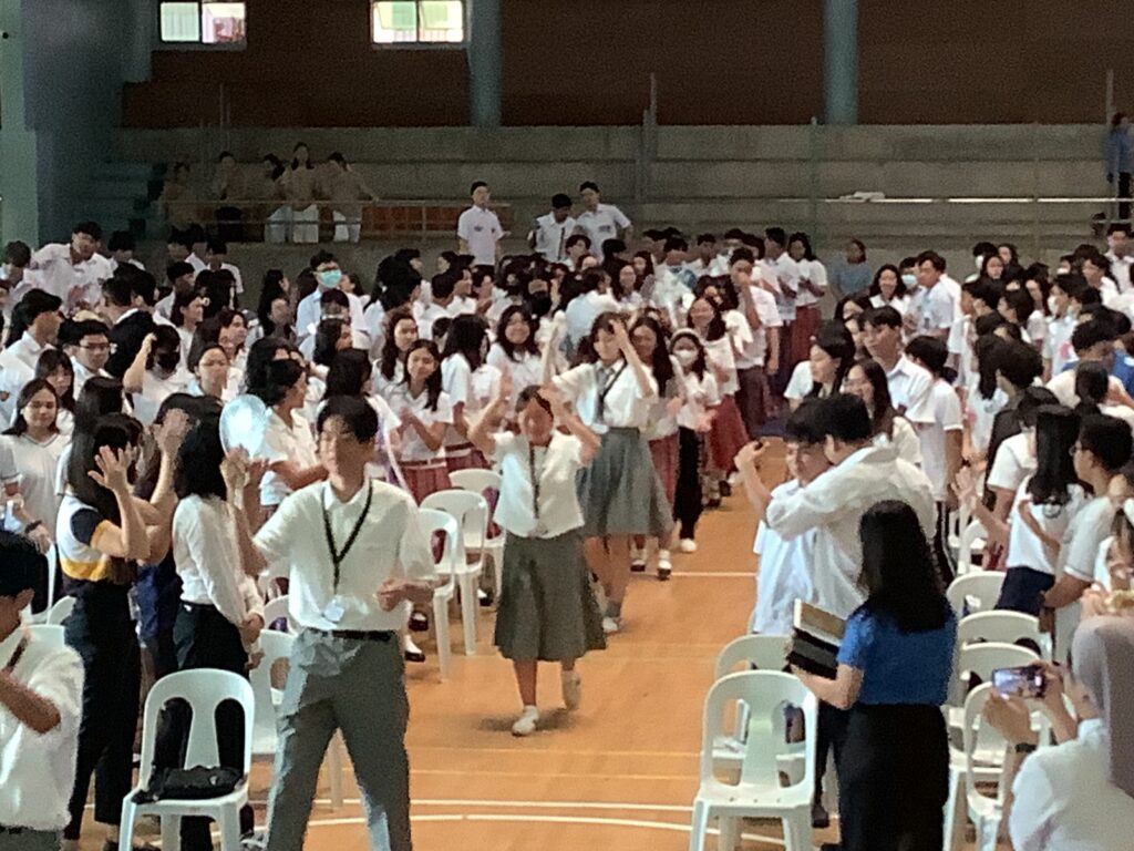 (イロイロ校での朝礼 阿波踊りを会場皆さんと踊りました)