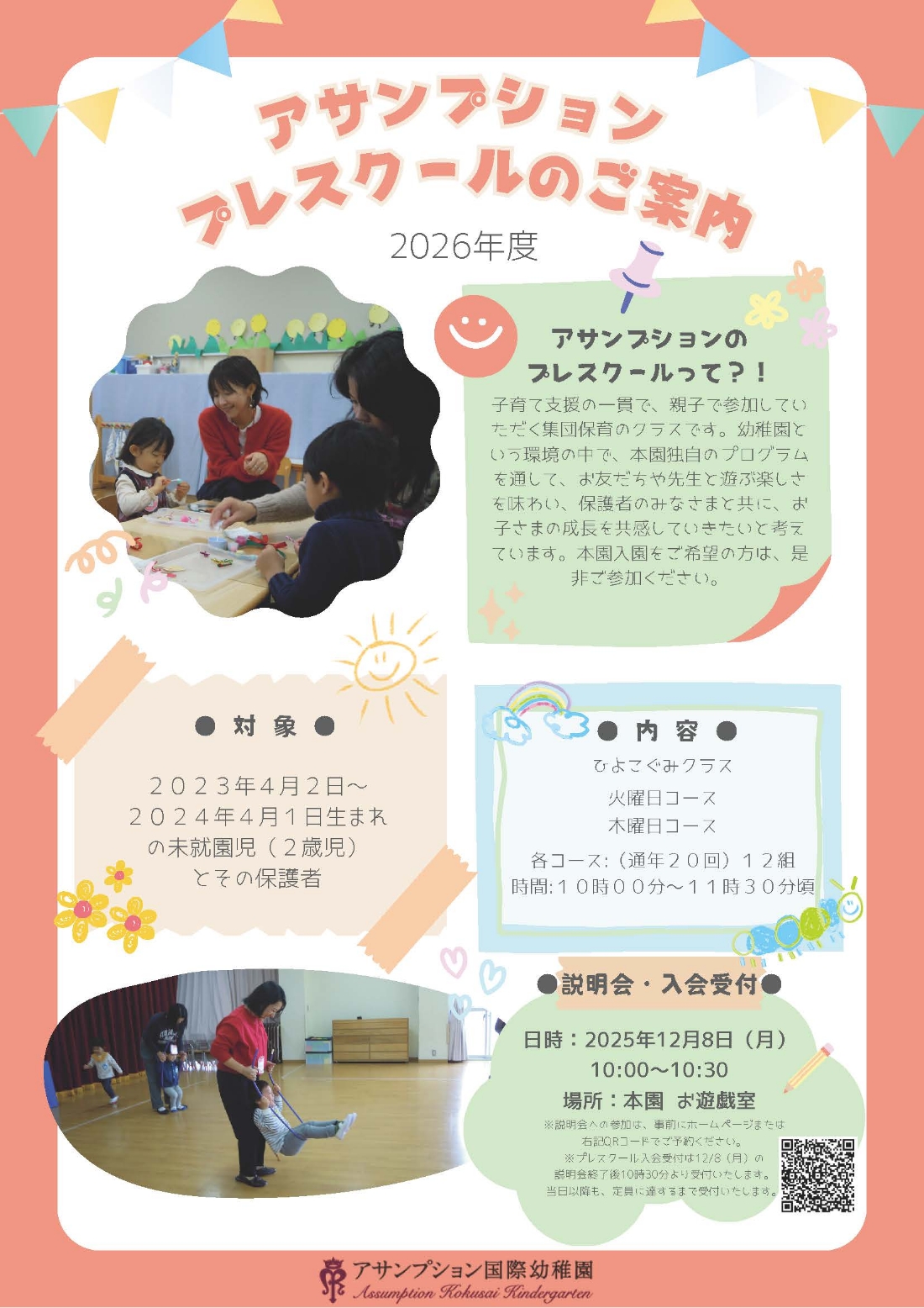 2023年4月2日~2024年4月1日生まれの未就園児とその保護者。