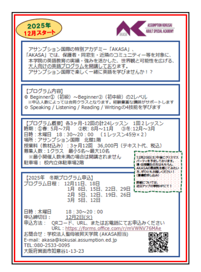 アサンプション国際のAKASA-大人のための英語プログラム-が