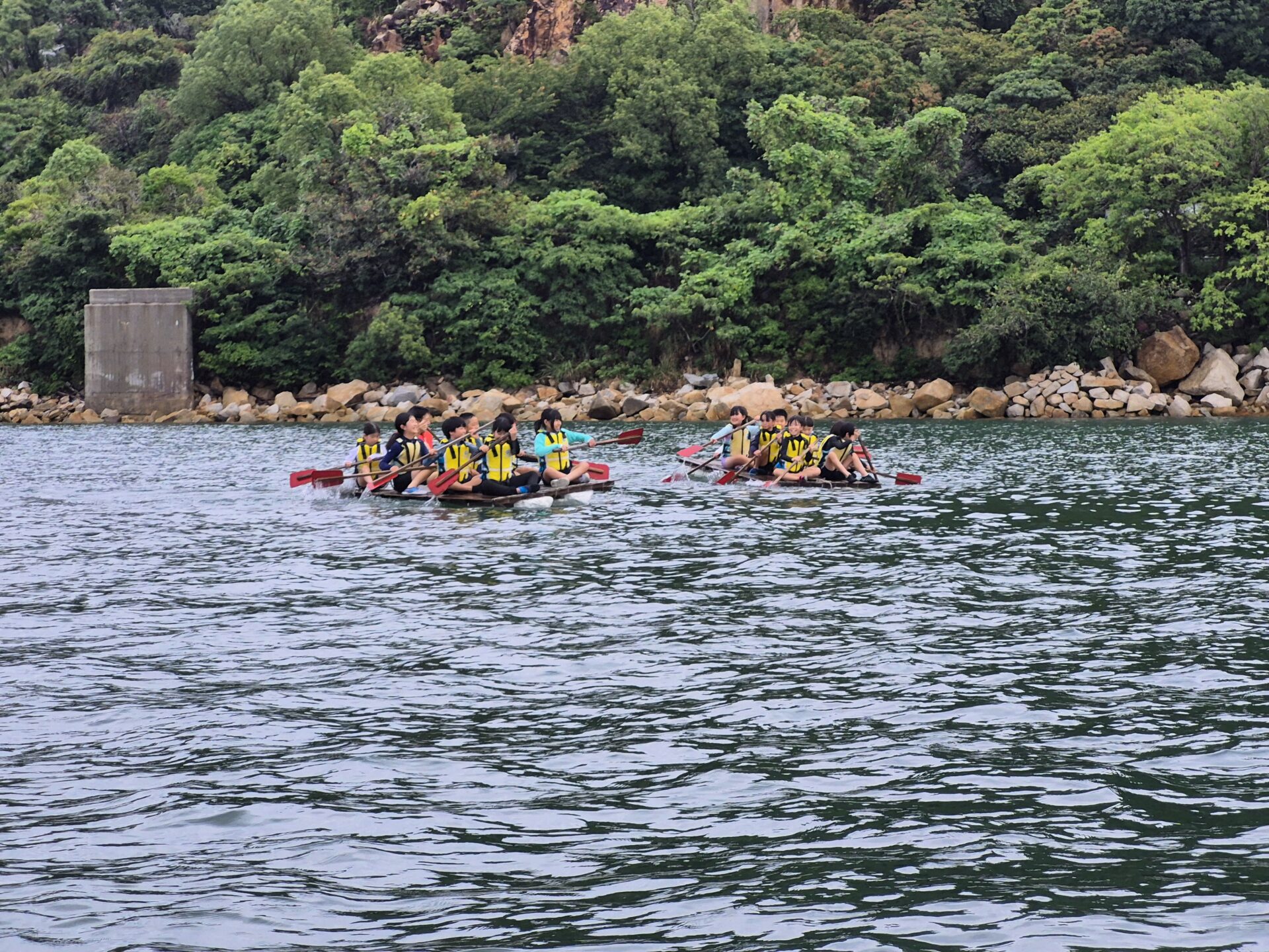 2日目はハードスケジュールです。午後からはいかだ体験。いかだに乗って、少し離れは砂浜を目指します。いかだはみんなの気持ちが一つにならないと前には進みません。それぞれのグループでなぜかオリジナルの掛け声をかけながら砂浜を目指します。しんどいなか本とよく頑張ったと思います。