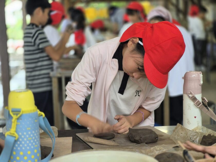 2日目はまずは備前焼体験。平皿、湯飲み、お茶碗、何かのオブジェ?を作っていました。みんな陶芸家のような真剣なまなざしです。仕上がりは2学期末ごろに学校に作品が届くそうです。楽しみですね。
