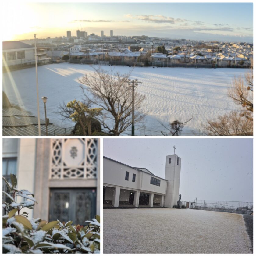 グラウンドも一面が雪に覆われた朝でした。
