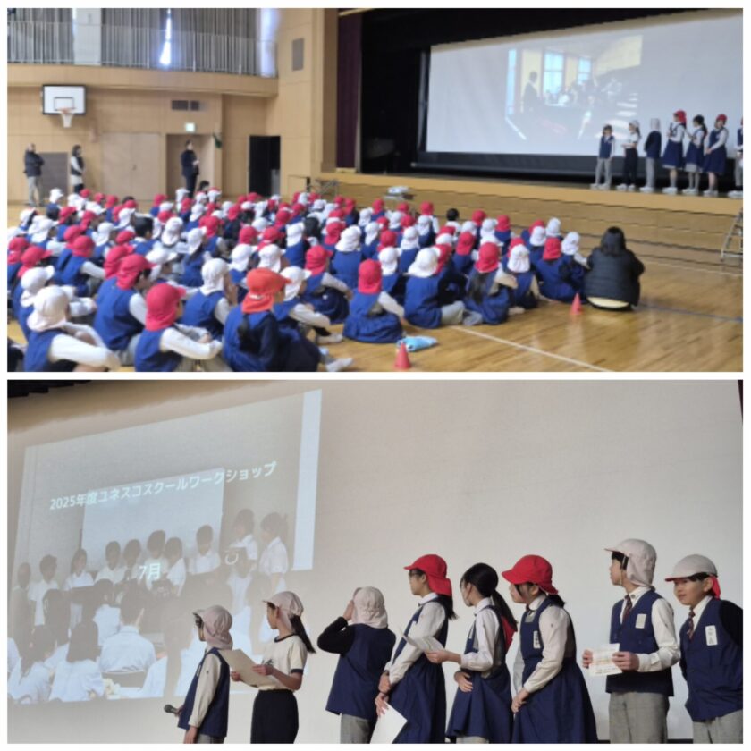 その経験を、参加した児童が全校朝礼で報告してくれました。国際的な学びの場で得た気づきや、これから自分たちが取り組みたいことを堂々と語る姿に、頼もしさを感じる時間となりました。