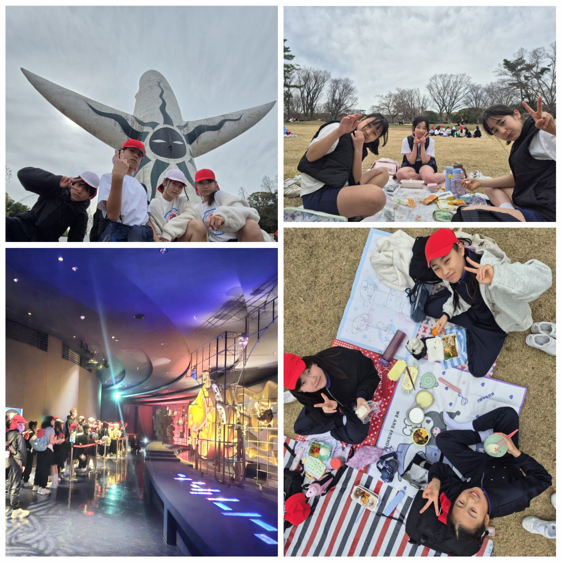 子どもたちは、万博記念公園へ遠足に出かけました。太陽の塔の内部を見学したり、民俗博物館では各国の暮らしの様子に触れたりと、学びのある時間を過ごしました。実際に見て、感じることで、教室では得られない発見がたくさんあったようです。