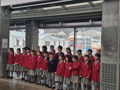 冷たい風が吹く中でしたが、子どもたちは最後まで一生懸命に歌い、また、真剣な表情で募金活動に取り組んでくれました。