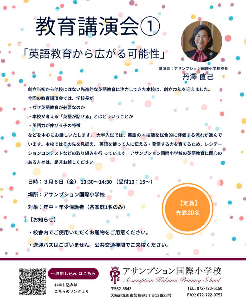 アサンプション国際小学校の英語教育にご関心をお持ちの方は、ぜひこの機会にご参加ください。