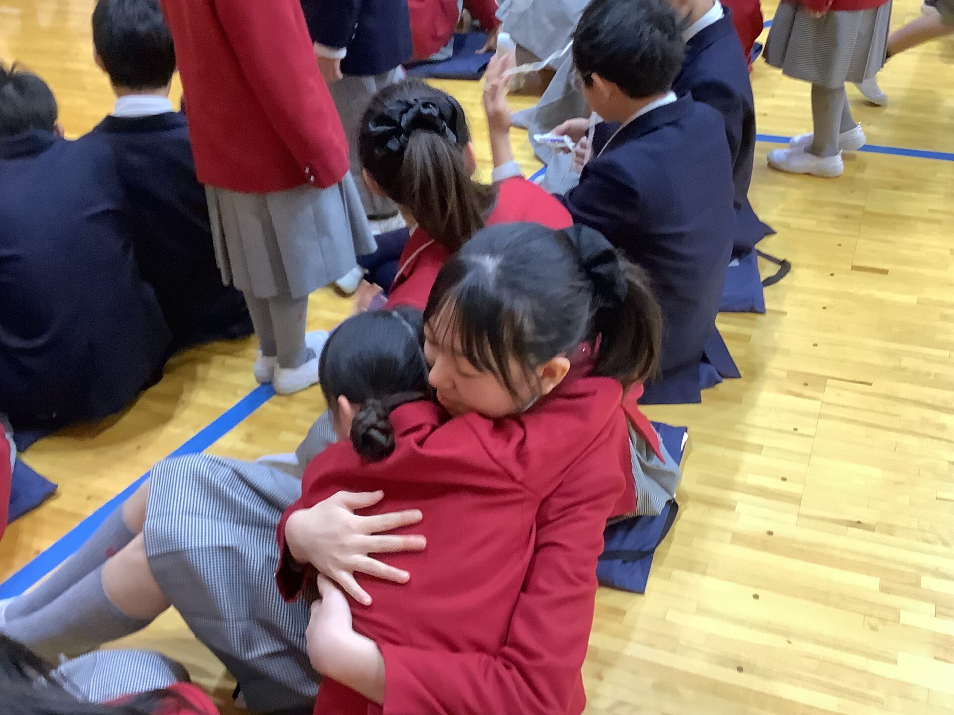 最後に、1年生からペアの6年生のお兄さんとお姉さんに感謝のメダルを渡した瞬間は、それぞれが抱き合い、涙している場面もありました。「卒業しないで!」の想いが込み上げていたのですね。