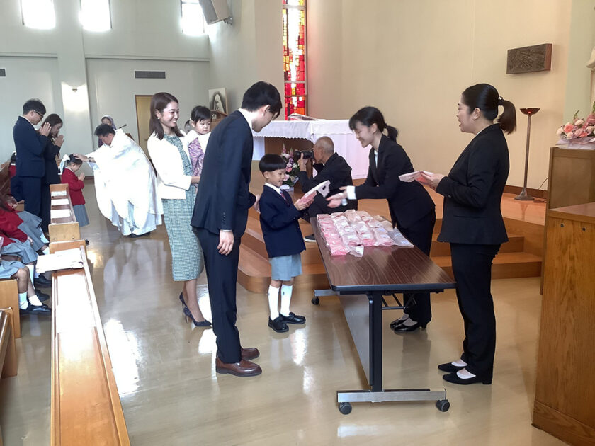 10月18日は、小学校1年生と共に七五三を保護者の皆様と共に、神父様から祝福を頂きお祝いする事が出来ました。